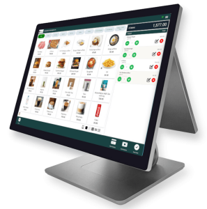 Equipped with a large 15.6″ secondary display that allows in-store advertisement.